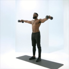 2. Raise dumbbells up to the side until arms are parallel, engaging your lateral deltoids.