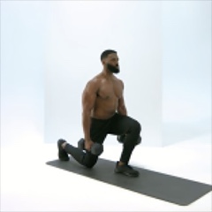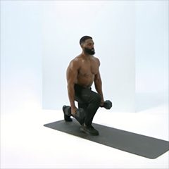 2. Lower into a squat, place the dumbbell on the floor, then jump your feet back.