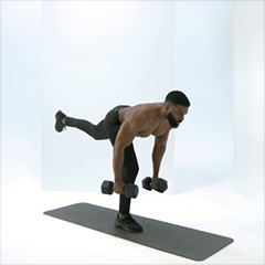 2. Pull the dumbbell to your rib cage with one arm, pushing on the floor with the other hand.