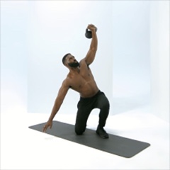 3. Engage your core and press into your left hand to lift your torso, keeping the dumbbell overhead.