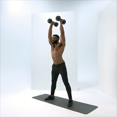 2. Press the dumbbells above your head, squeezing your triceps at the top.