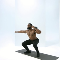 4. Reverse the motion to squat and lower the dumbbell to return to the starting position.