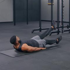 1. Lie on your back with your legs extended straight up towards the ceiling, arms behind your head.