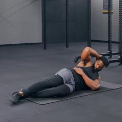 3. Use your right oblique to lift your torso, bringing your right elbow toward your hip.