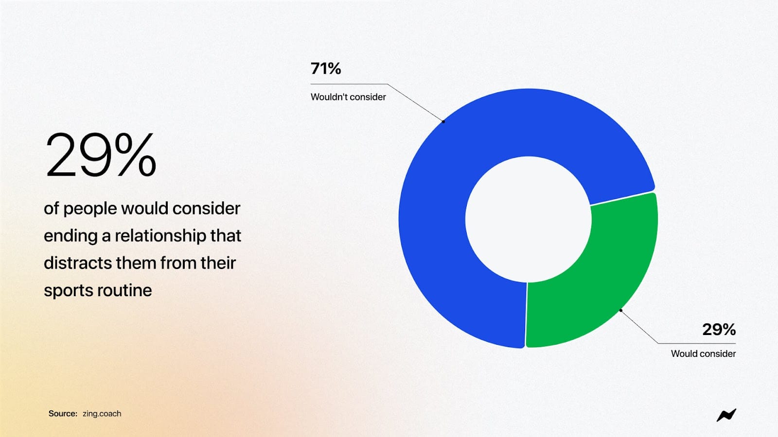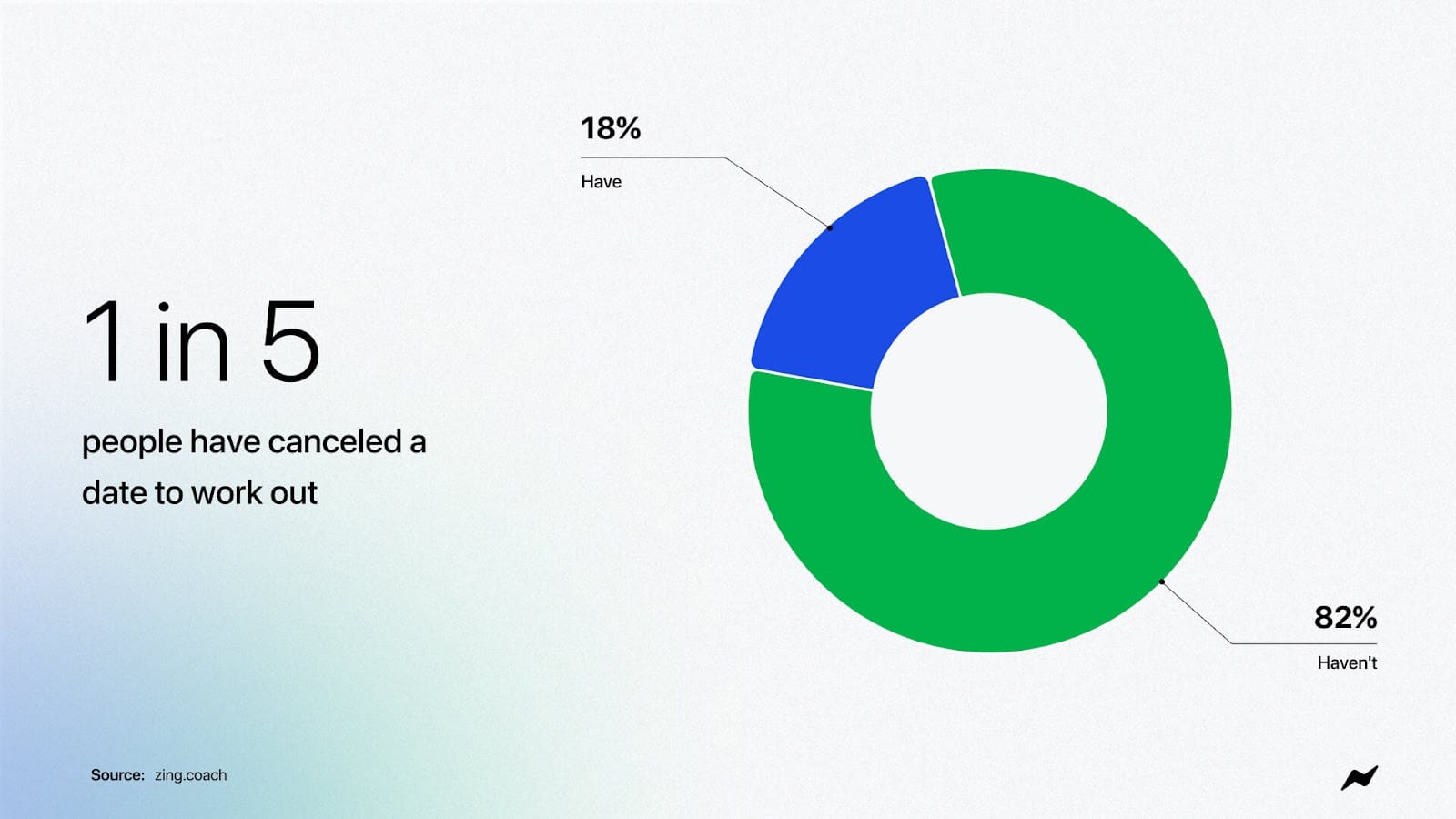 - However, for some, their love for working out makes finding a match difficult. Some 18% say they have canceled a date to exercise, while 29% would consider ending a relationship to focus on sports.