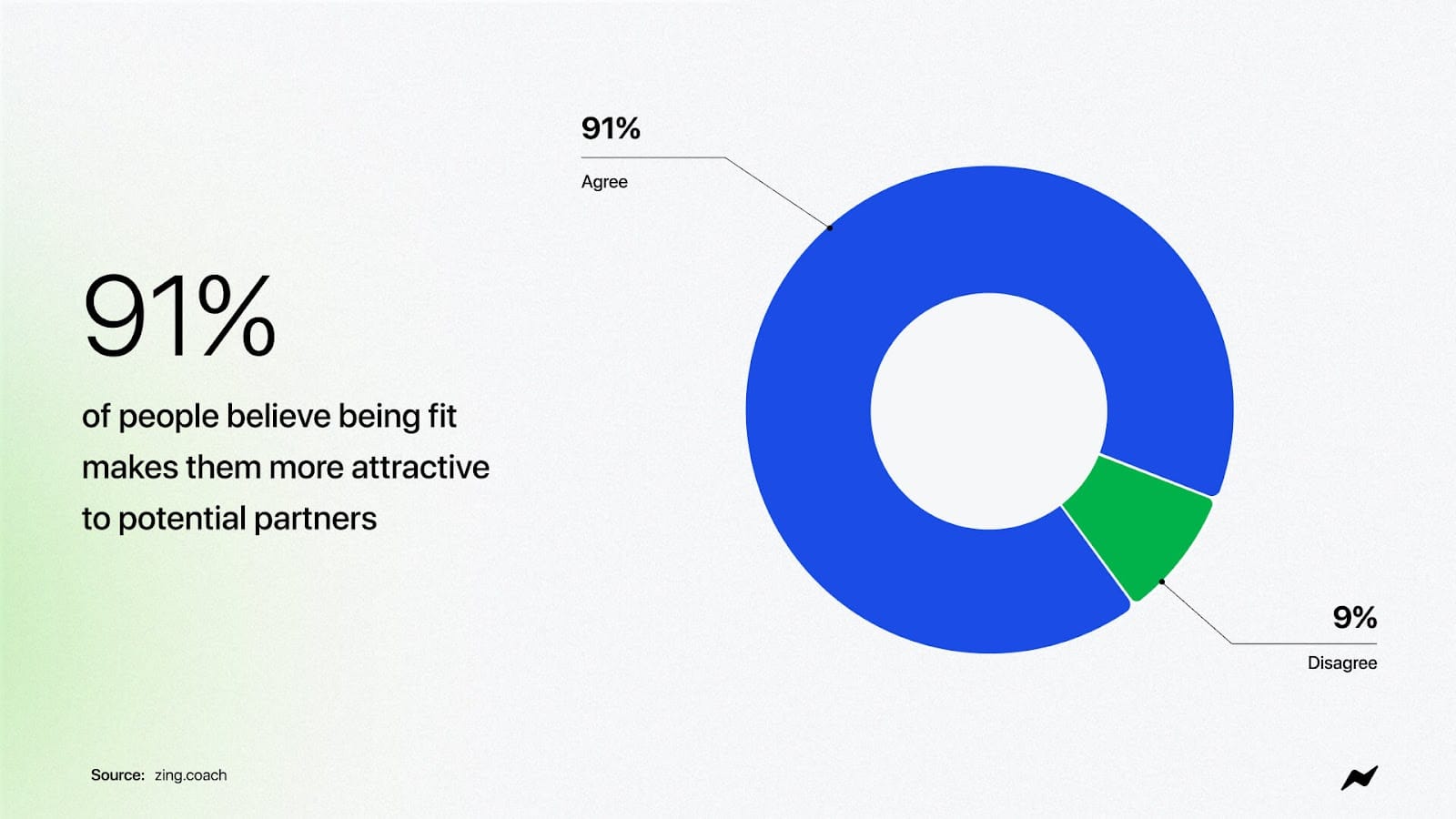 - More than 90% of people believe working out makes us more attractive and the confidence boost it provides has been shown to increase our chances of finding a romantic partner.