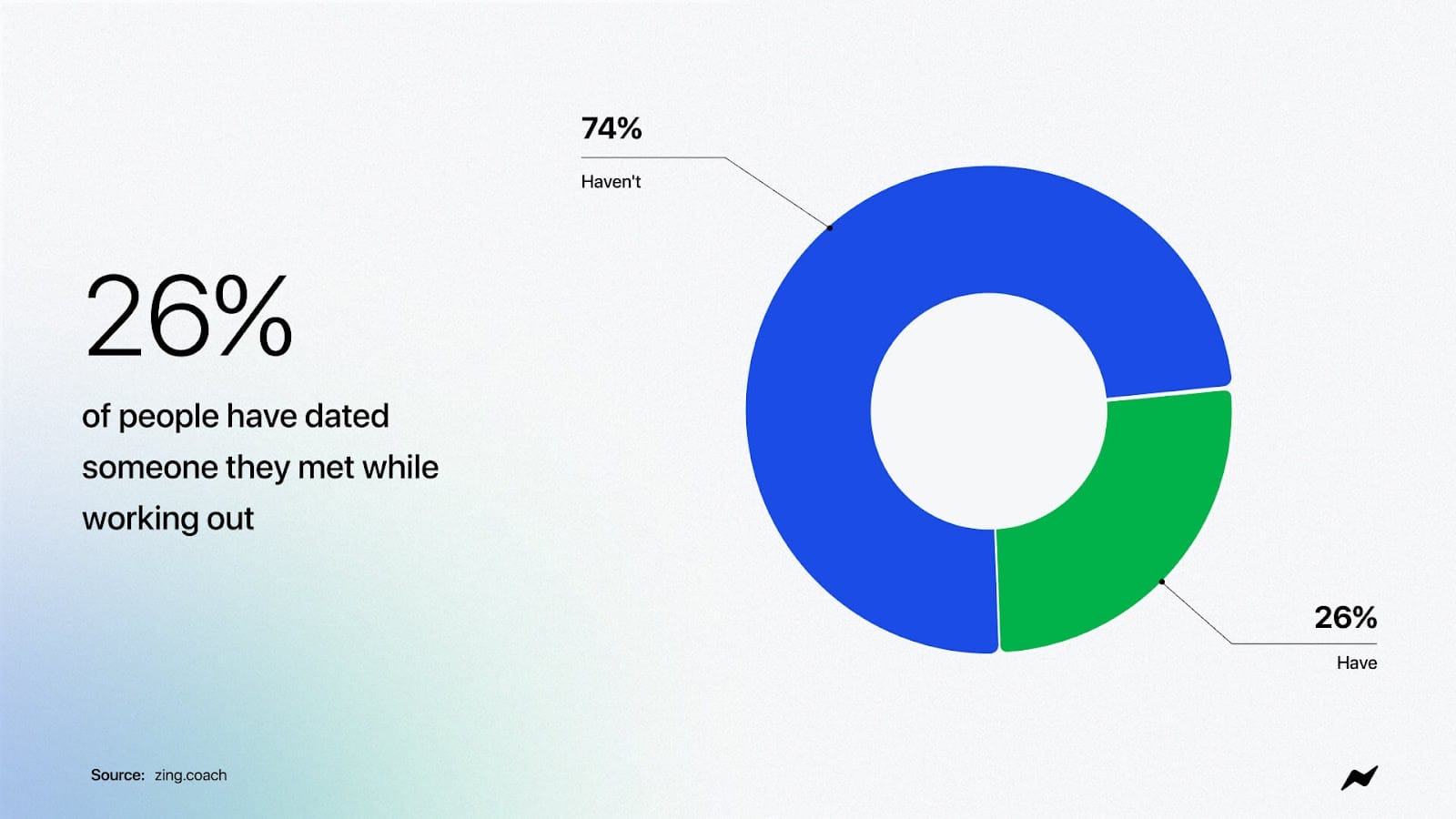 Before you know it, that mild flirting has turned into an unrivaled gym partnership — You’re spotting them on the weight bench and pushing them through the last mile of their run. With heart rates soaring, it’s no wonder 26% of people have gone on to date someone they met during a workout.